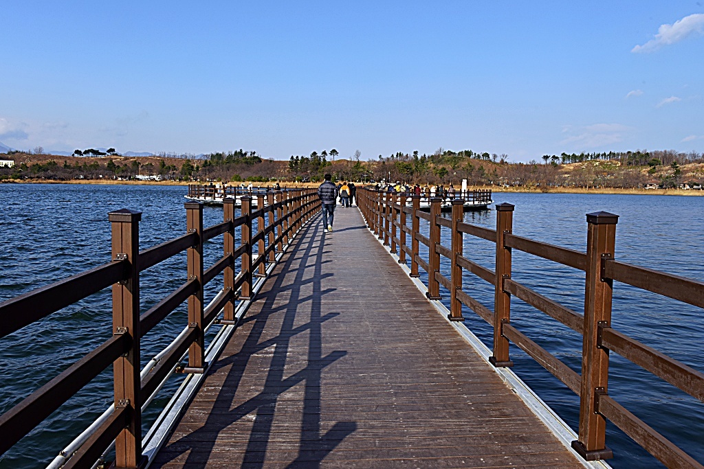 영랑호수둘레길은 총 8km의 길이입니다 호수의 폭은 약 1㎞로 동해와 접하고