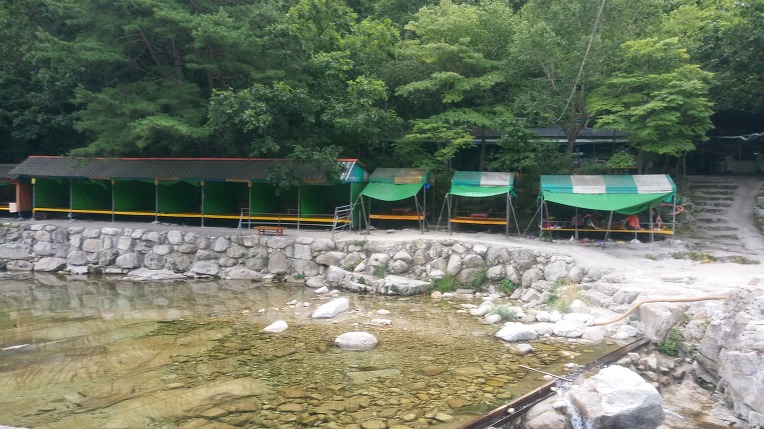 계곡 입구에 민박집과 오토캠핑장 등 숙박 시설이 있고 많은 음식점이 밀집해 있는