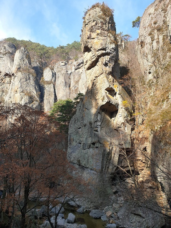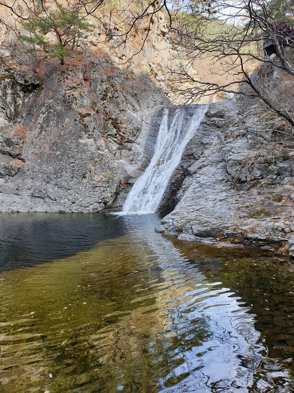 하순이 적기로 지금은 겨울 모드이다 주왕산에 폭포가 많은 이유로는 7천만년 전에 이곳 퇴적