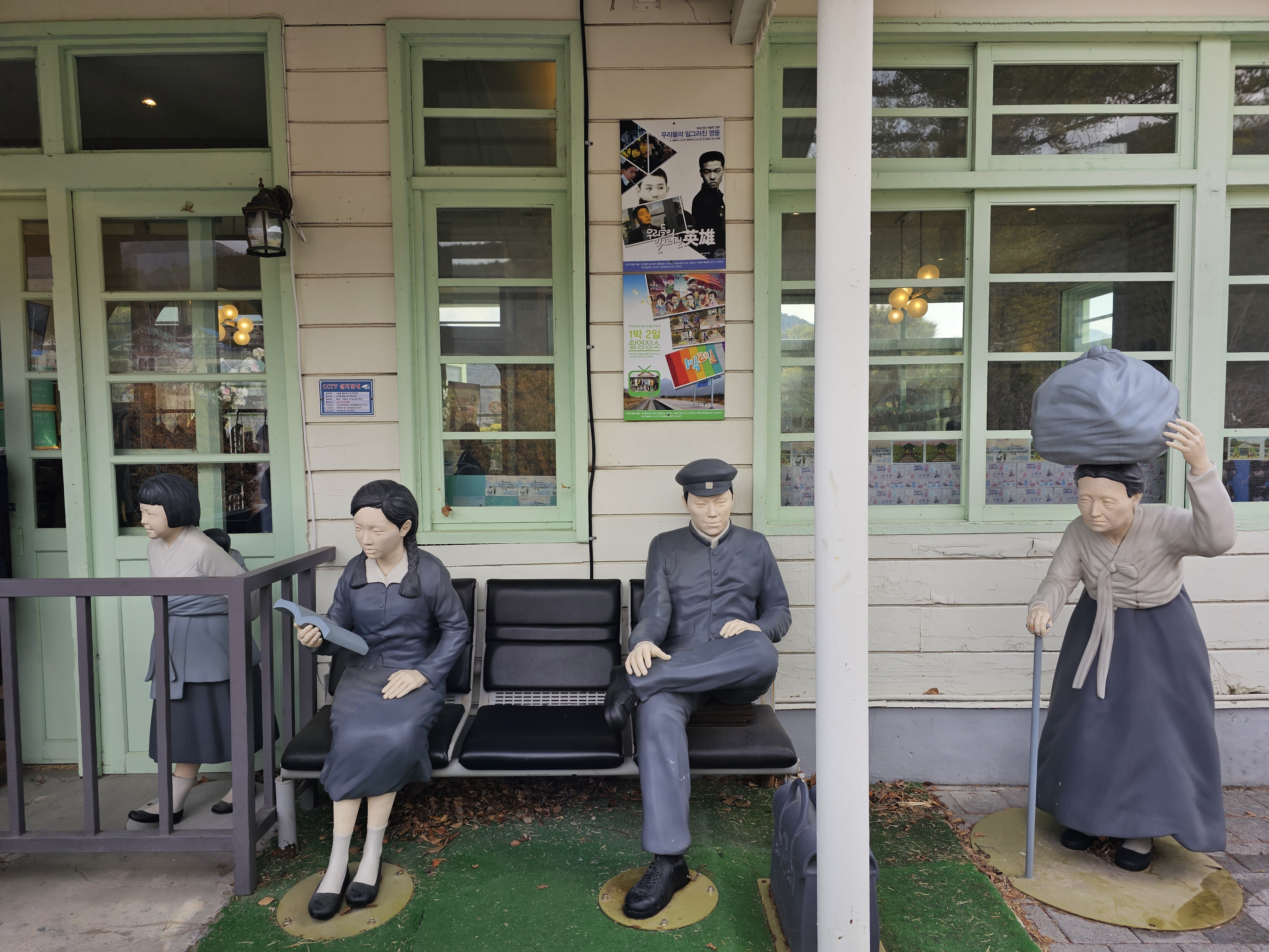 재 탄생하였습니다 옛 간이 의자와 난로와 역무실 그리고 철도 시간표 까지 예전 그대로