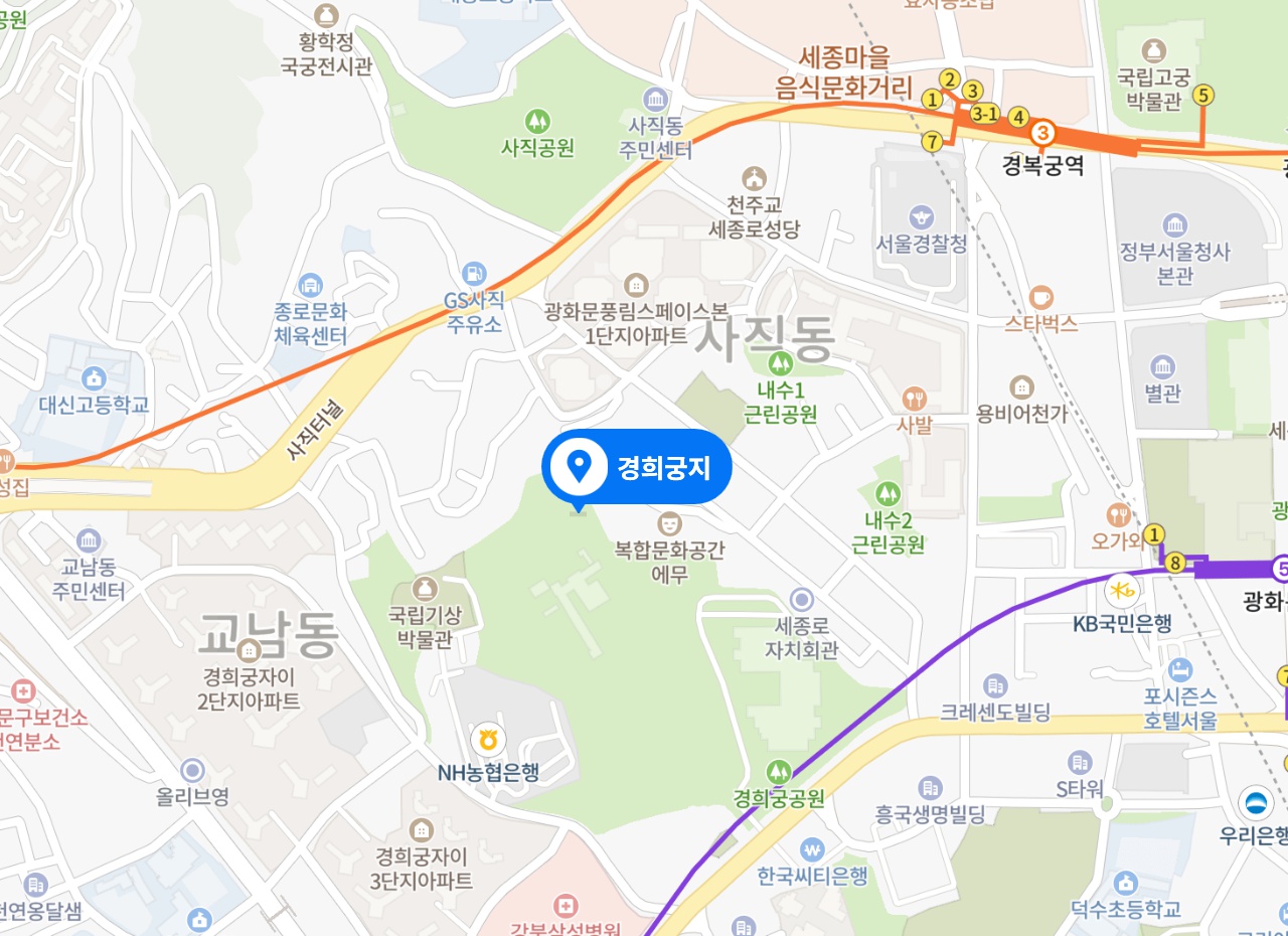 모습을 찾을수는 없어 경희궁지로 부릅니다.