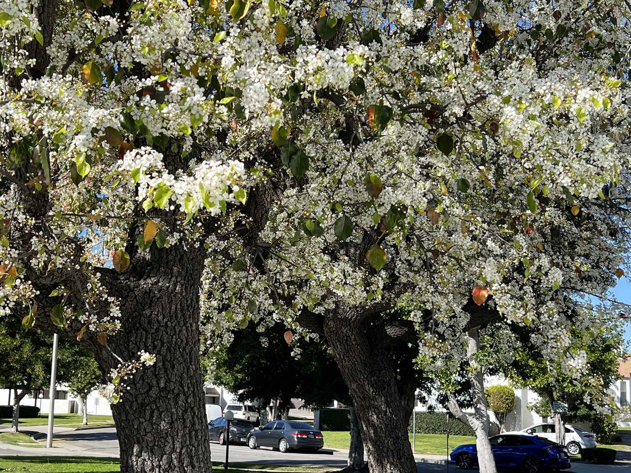미 남가주에는 2월이면 공원이나 가로수에 활작피는 배꽃 ( Pyrus Calleryana The Callery Pear )