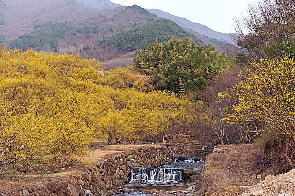 위치한 구례군 산동면 위안월계 산수유마을은 매년 3월이면 노란 산수유로