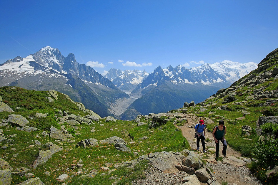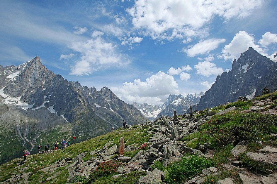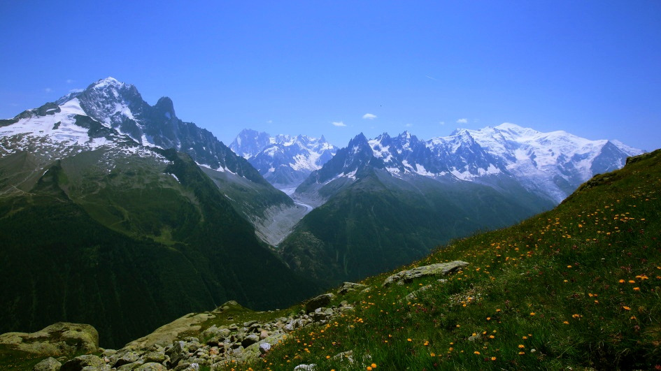 누구나 꿈꾸는 정상인 몽블랑이 있다.이를 중심으로 수많은 침봉과 빙하가 어우러진
