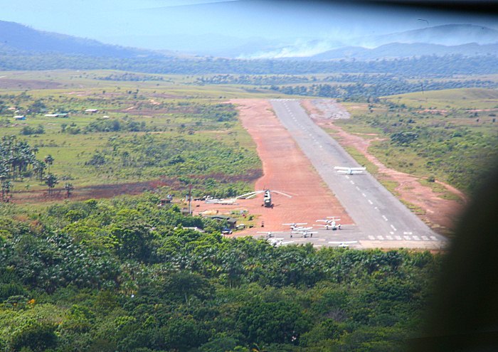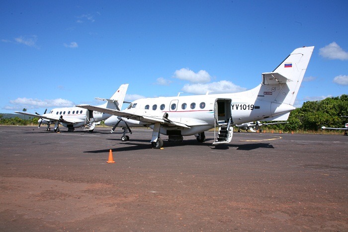 -까나이마의 활주로에 계류된 22인승 항공기-