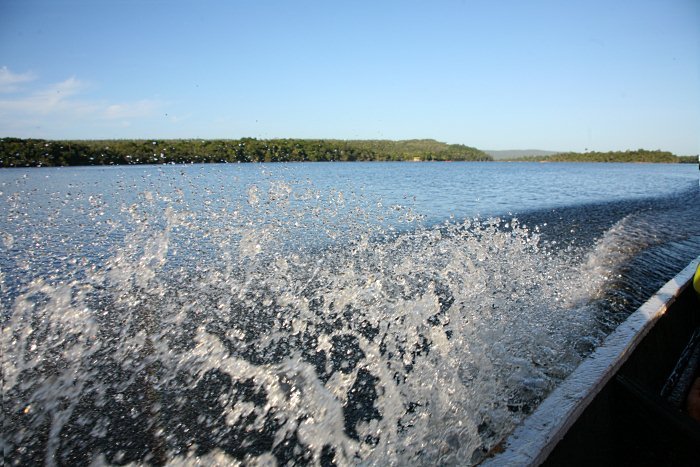 -수심이 얕은 곳은 배만 보내고 트레킹으로 질러간다.-