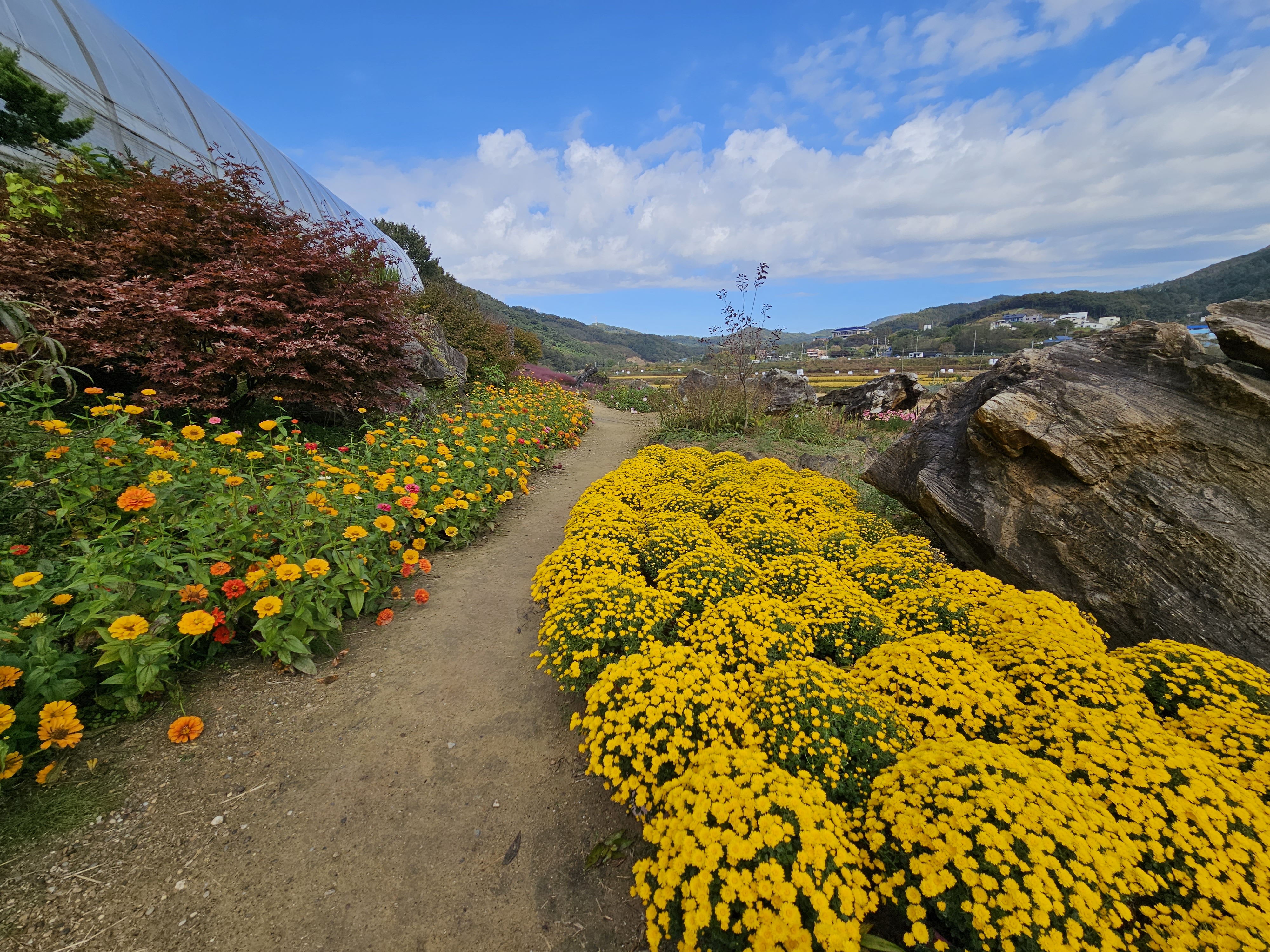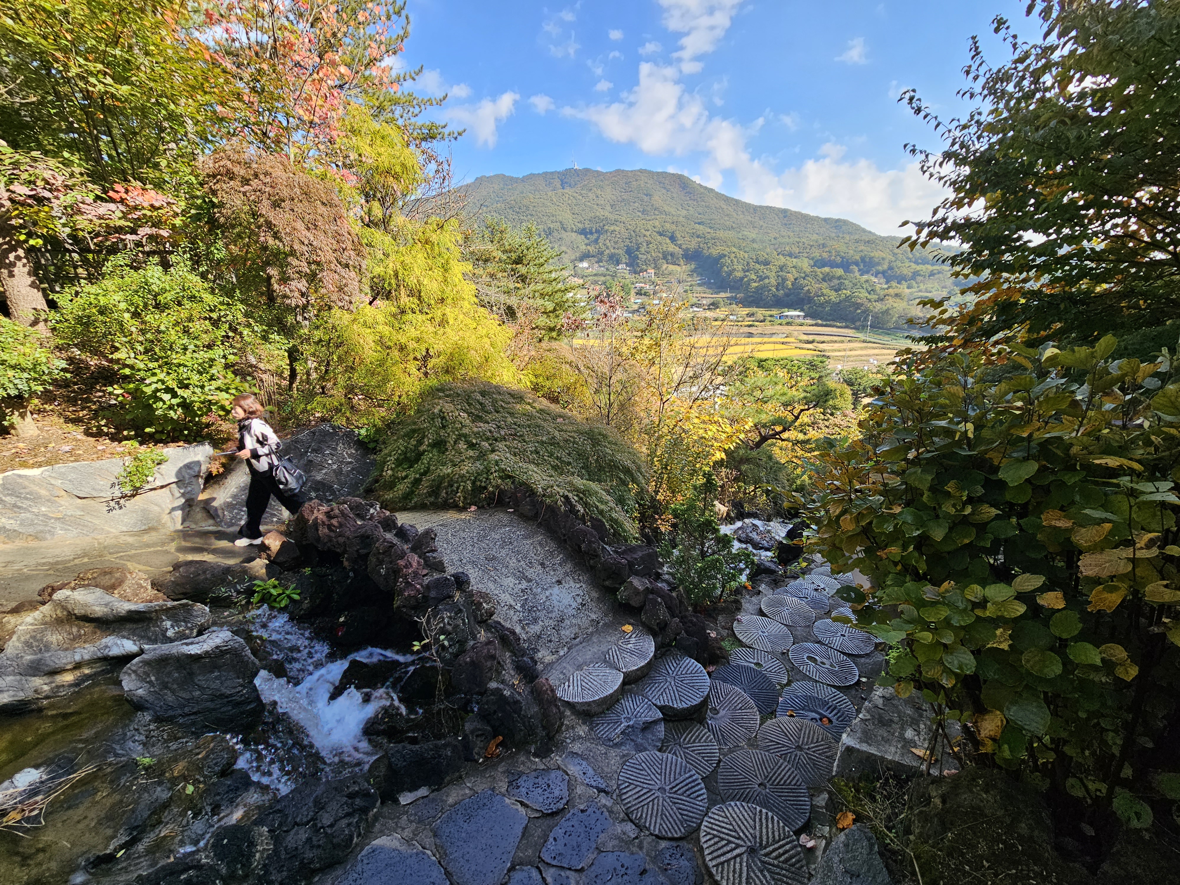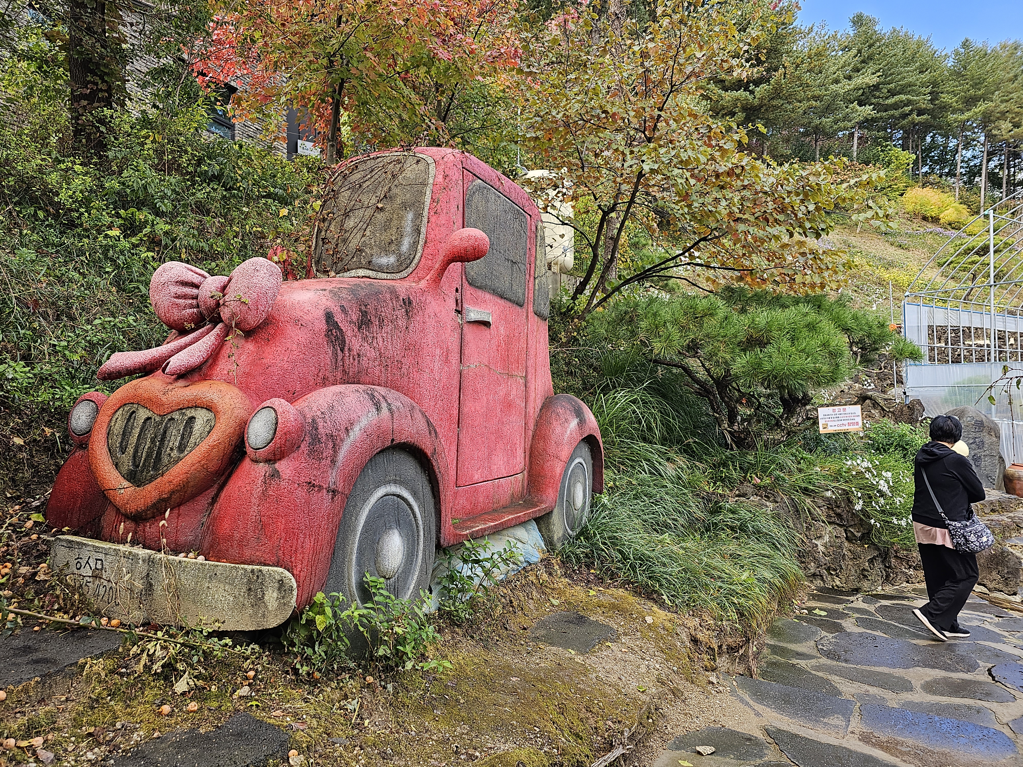 이곳은 대한민국 민간 정원 1호로 디정된 정원으로 100m 높이의 인공 폭포와 석부작길
