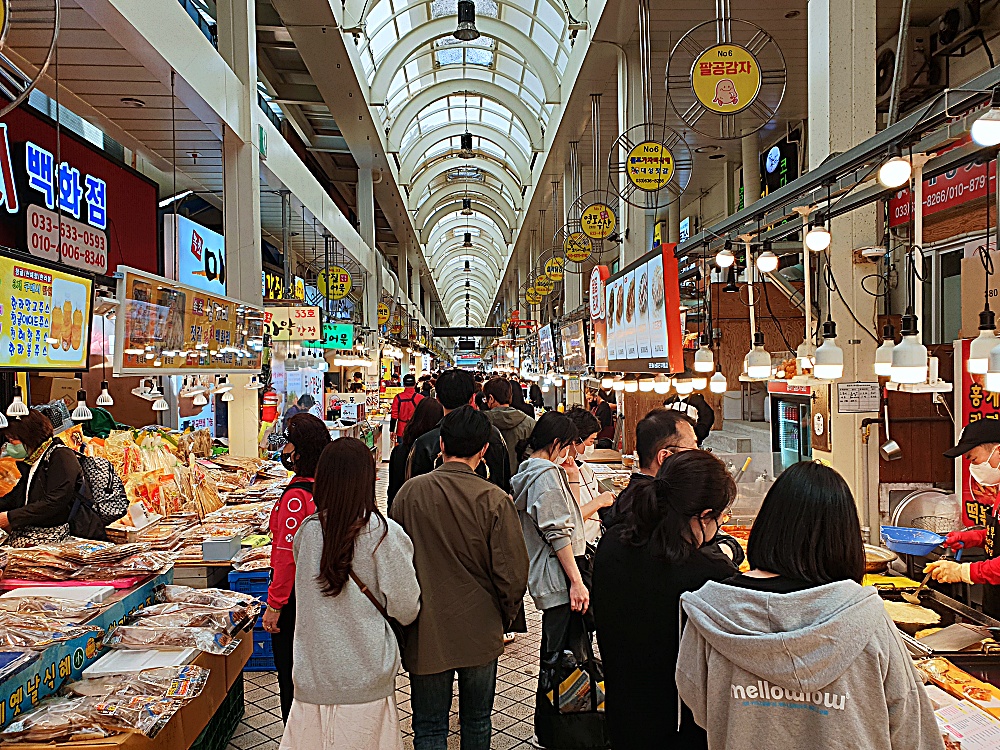 들에게 먹거리 명소로 인기가 높은 전통 시장입니다 속초 중앙 시장이라는 이름으로 시작하여