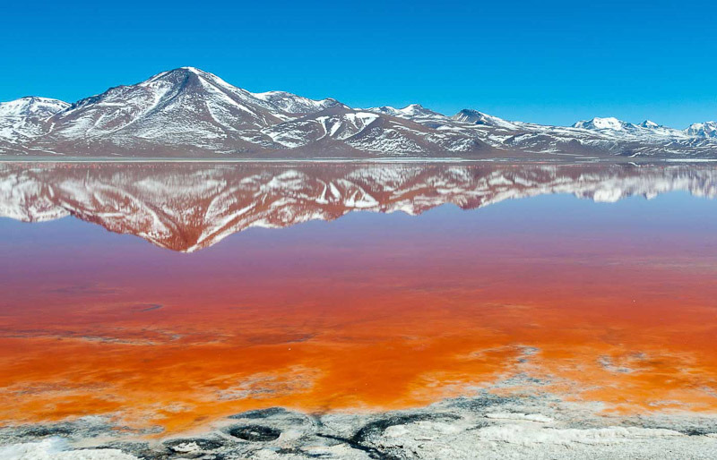 소금 호수로 에두아르도 아바 아 안데스 파우나 국립 보호 구역 내에 있으며 칠레