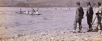 배로 두만강을 건너는 풍경
