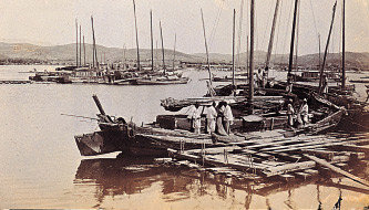 사진은 안둥 부두에 정박한 한국 사람들의 목선이다.