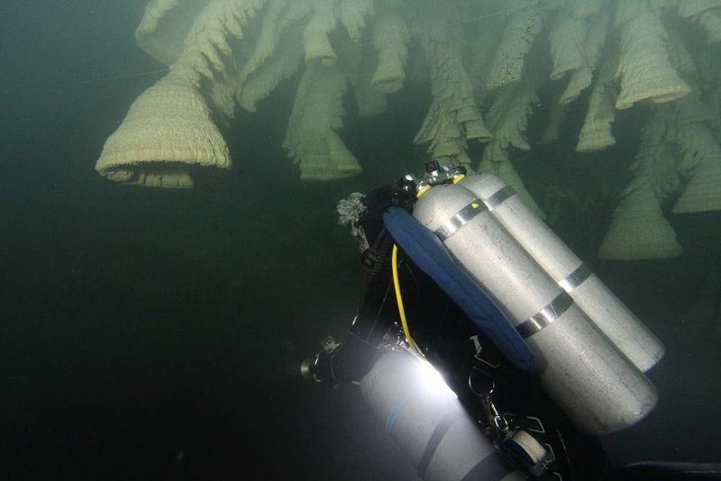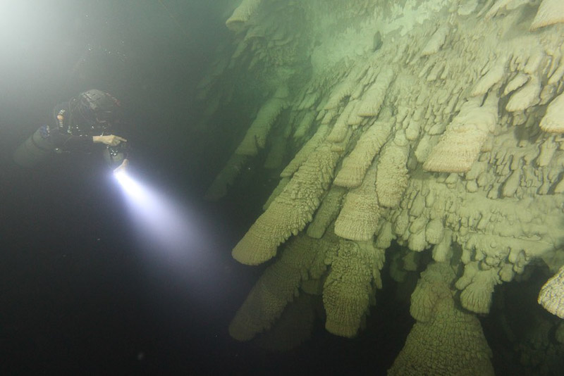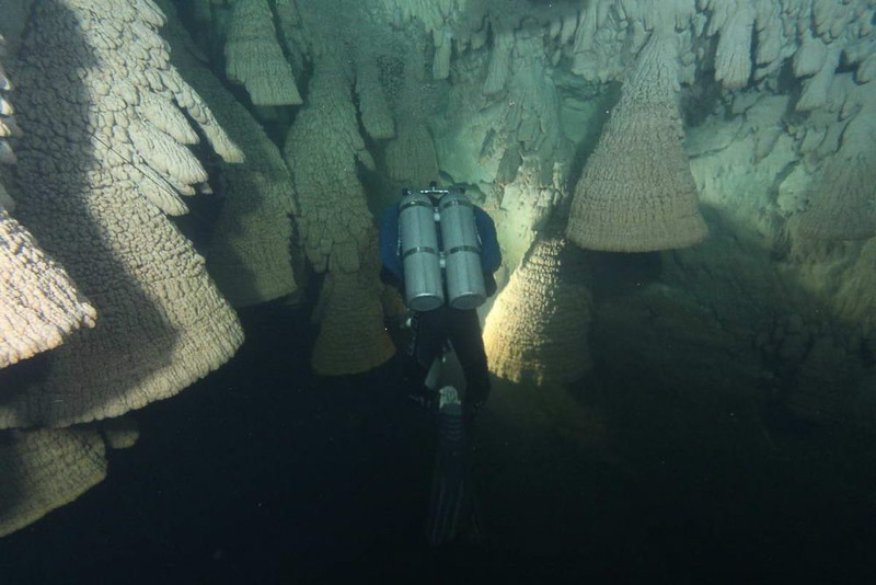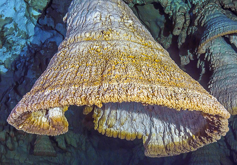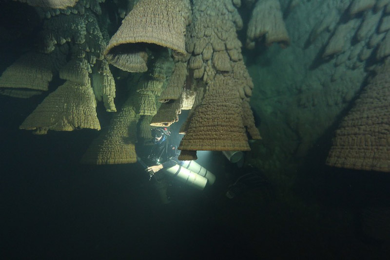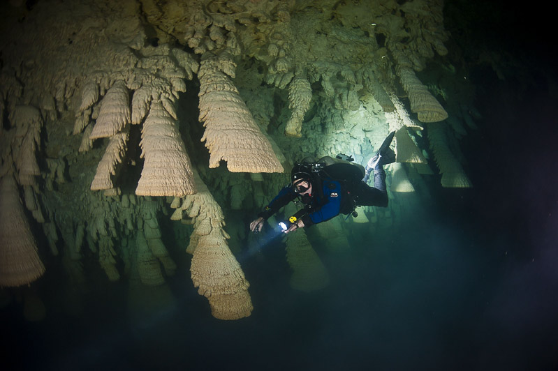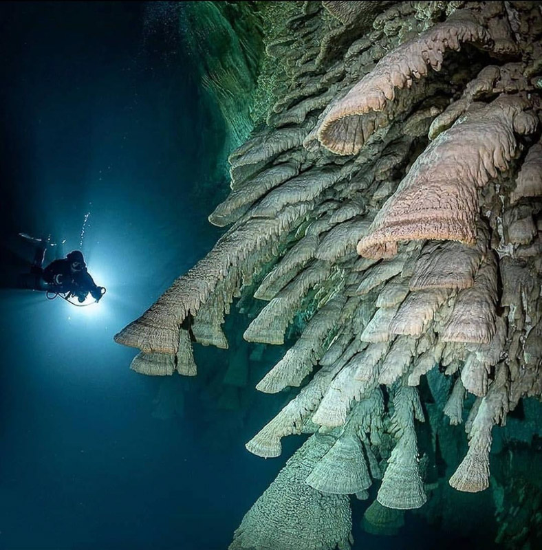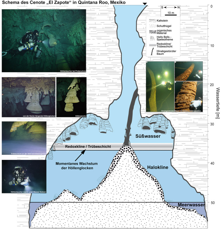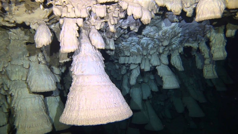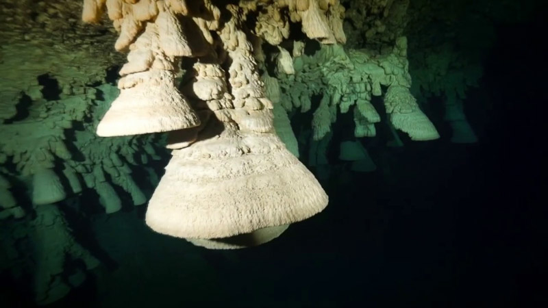 세노테의 수중 일정한 깊이의 천장에 많이 매달려있다.유카탄 반도에는 눈에 띄는 강이 없어