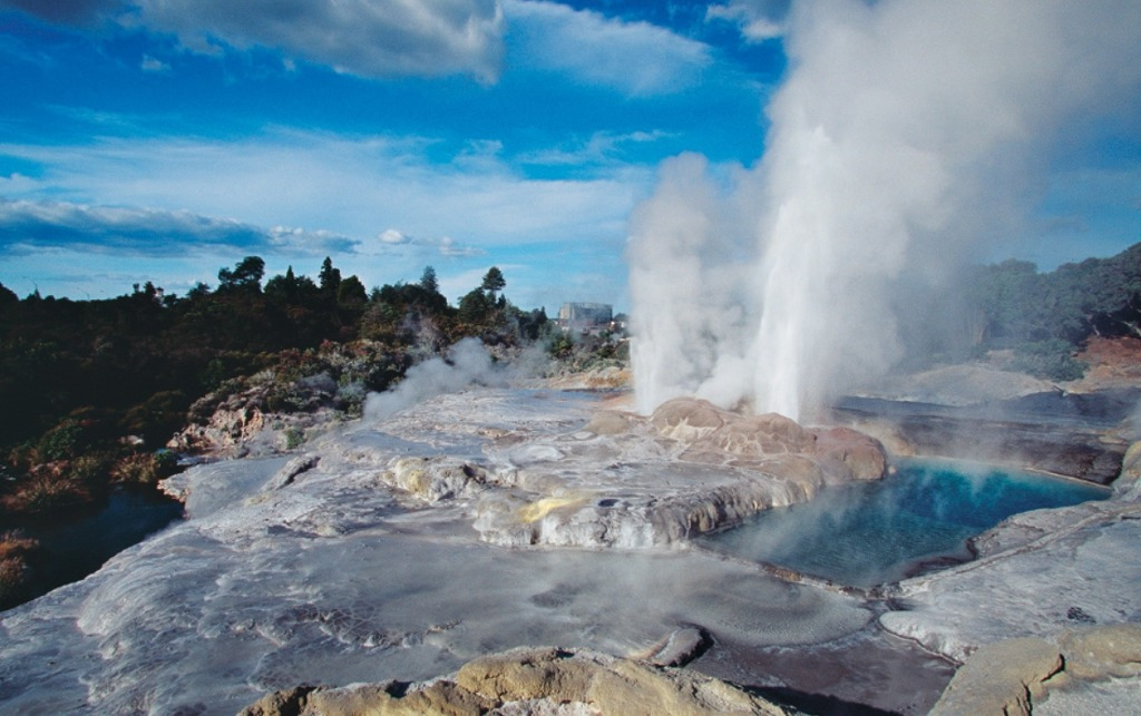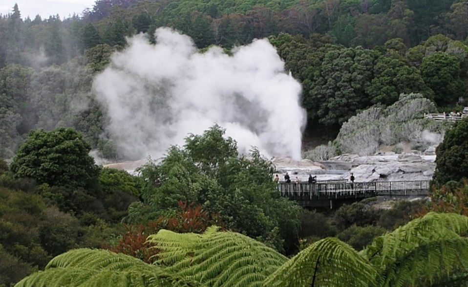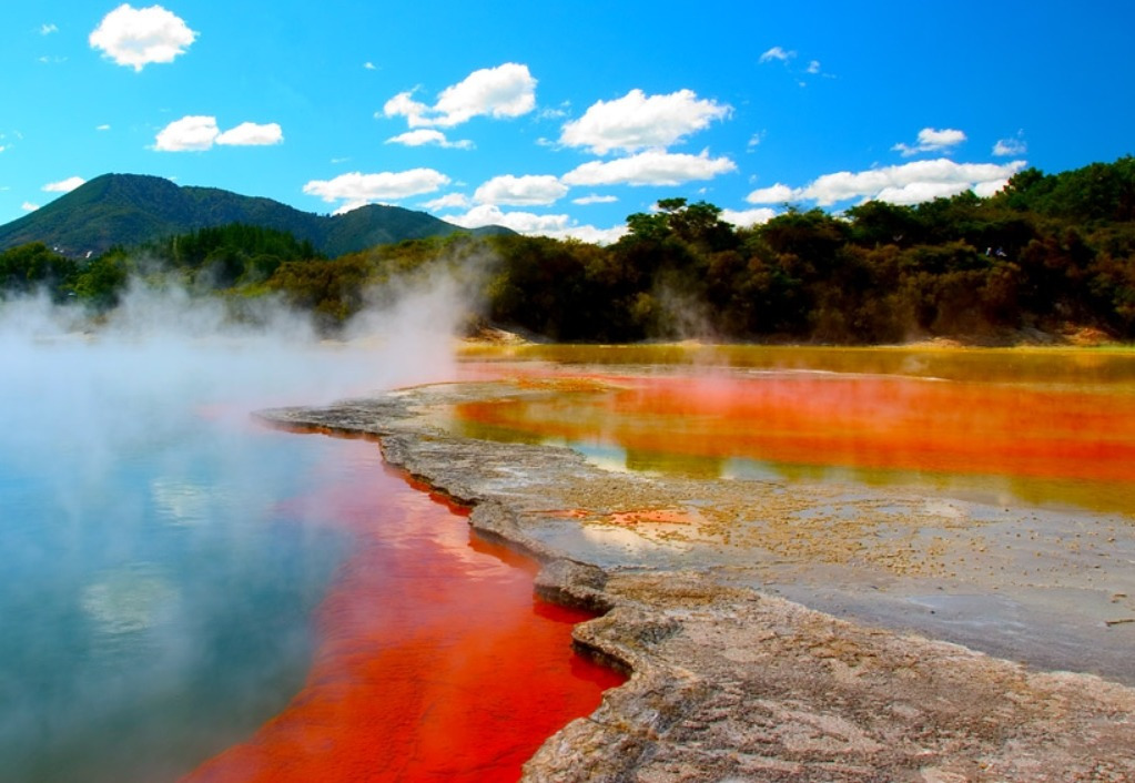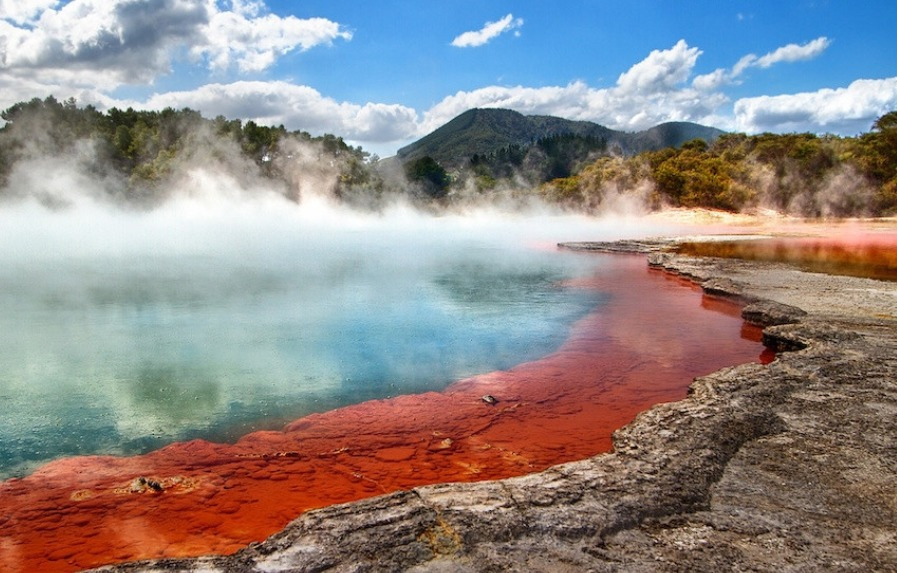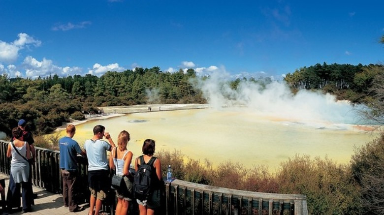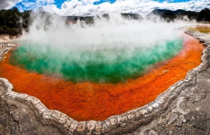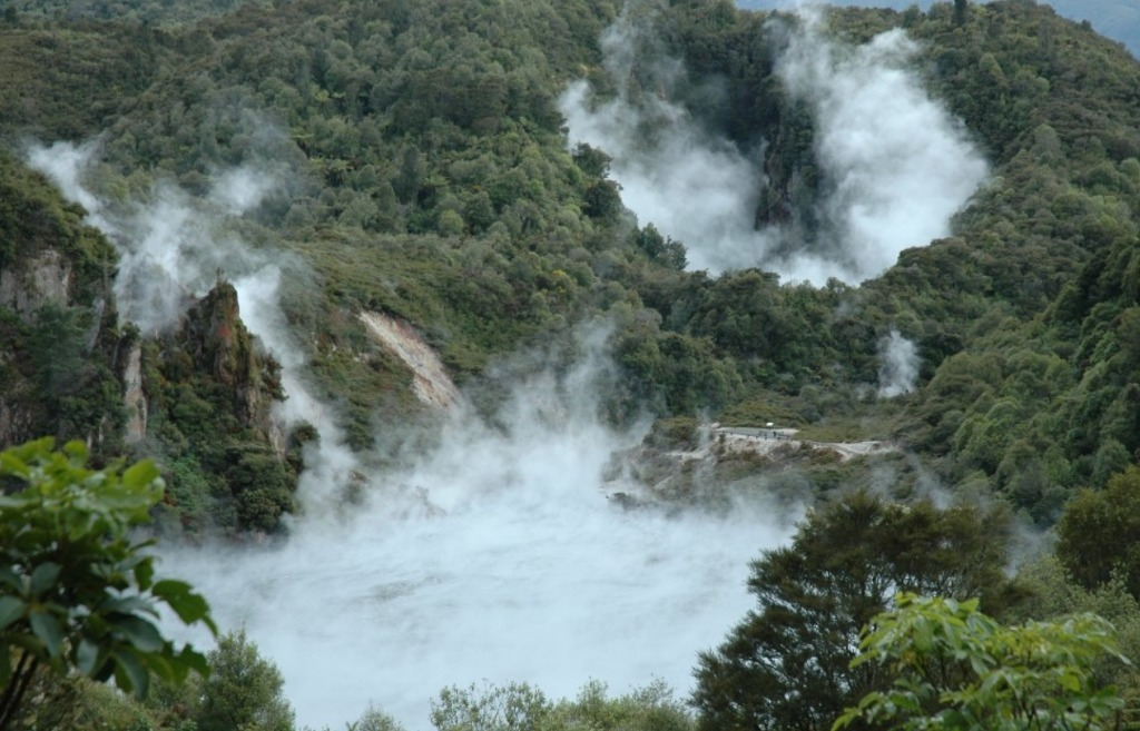 바로위에 놓인 로토루아는 세계에서 가장 활발한 지열지대중 하나로 가까이만 가도 화산