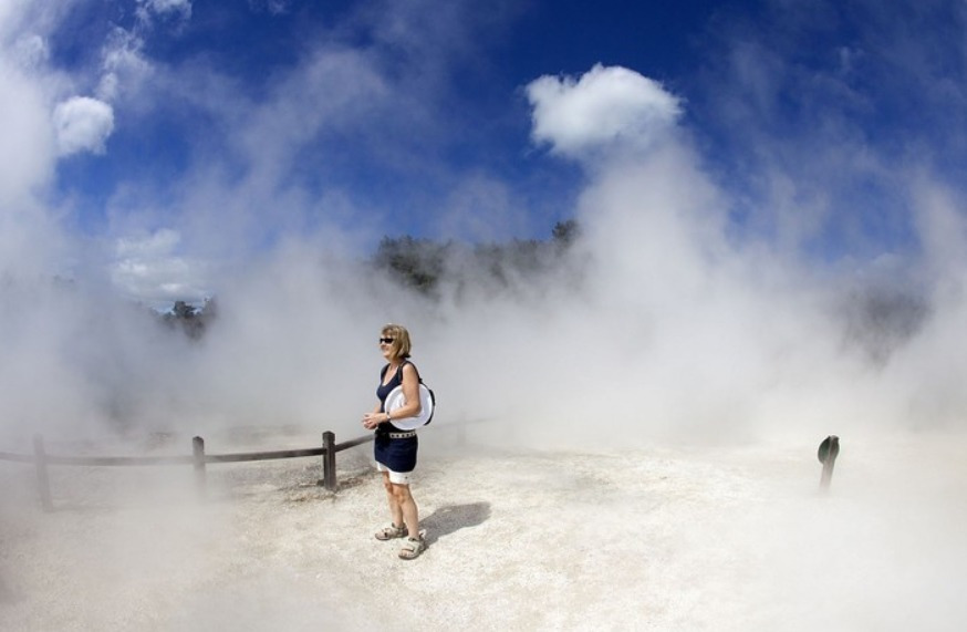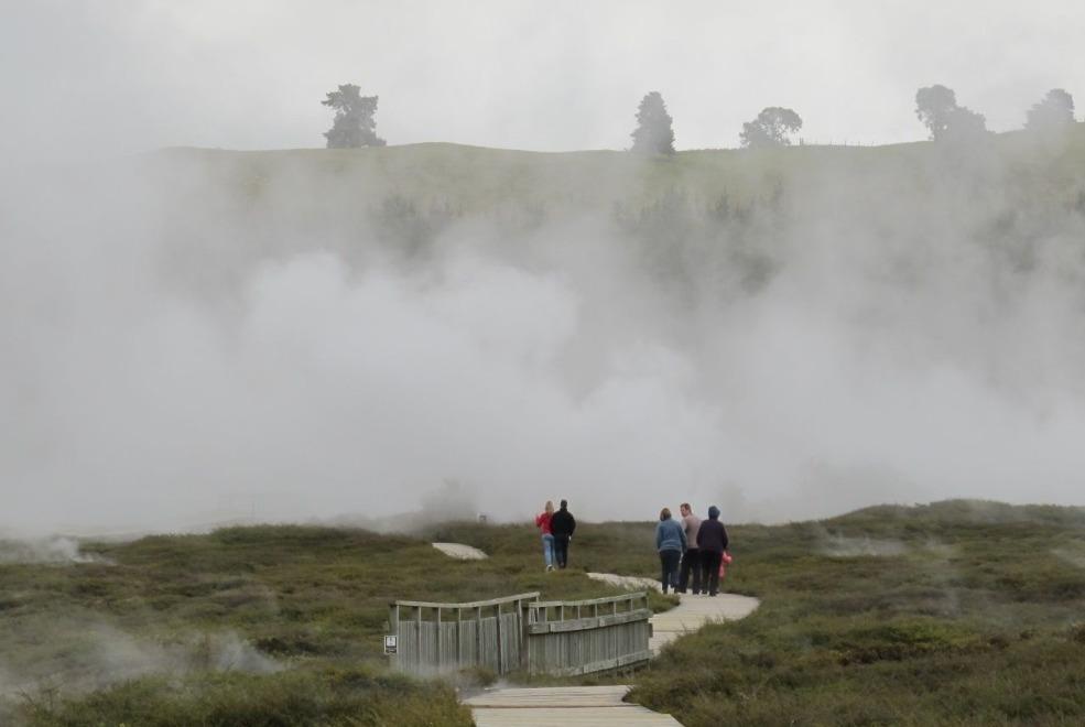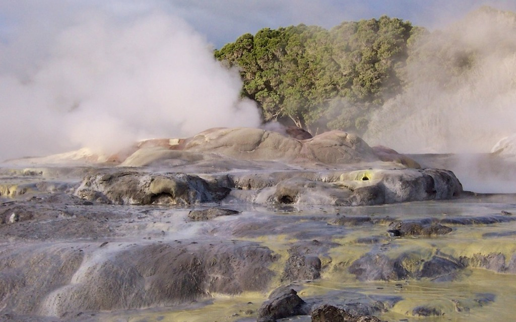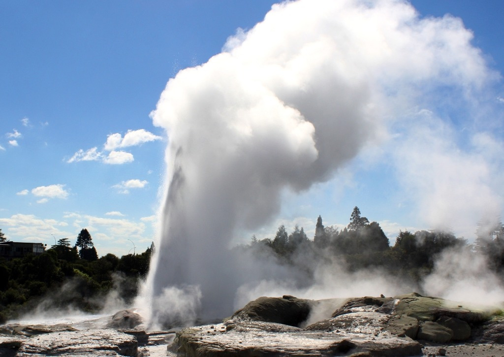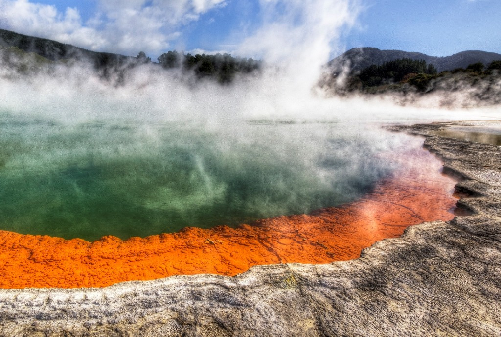 바로위에 놓인 로토루아는 세계에서 가장 활발한 지열지대중 하나로 가까이만 가도 화산
