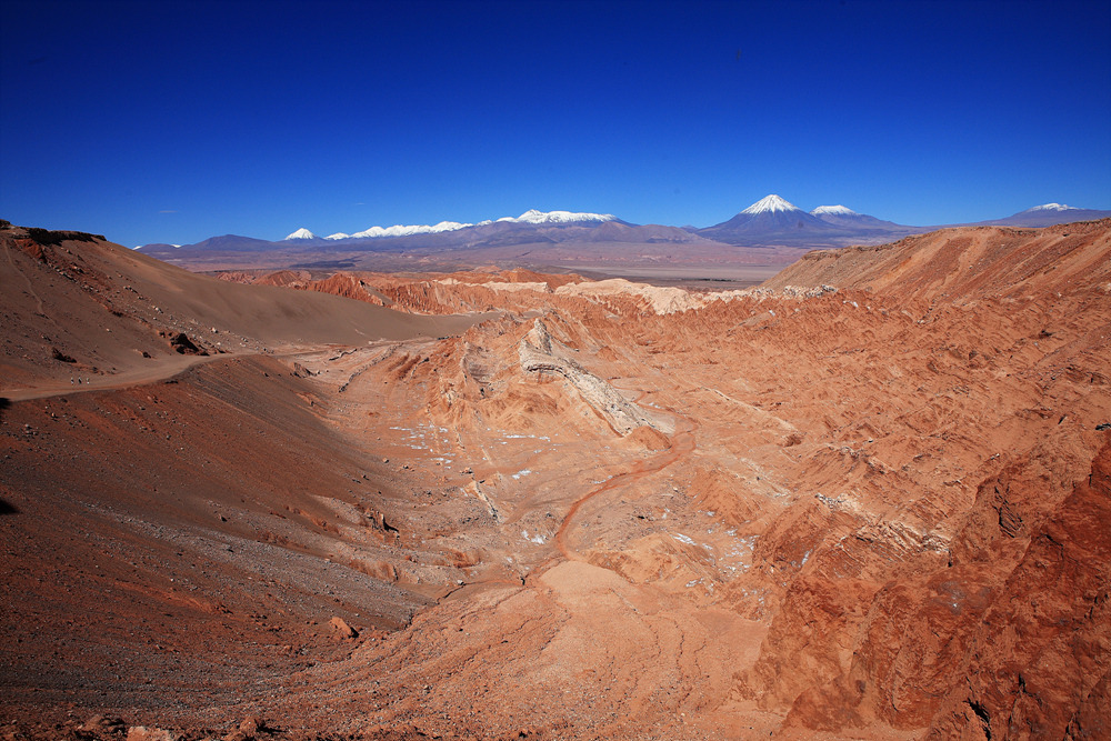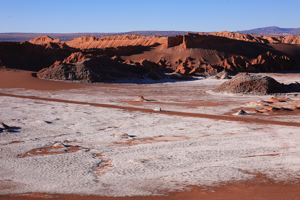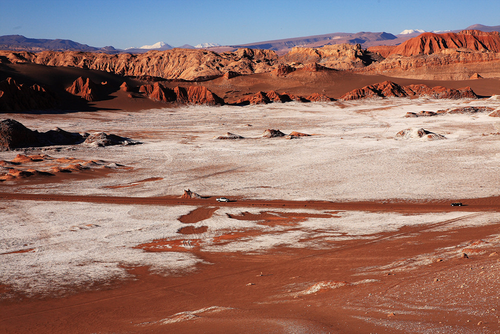 있고, 동쪽으로는 도메이코 산맥이 있다. 사막은 서쪽 해안산맥 기슭의 천연염전군과,안데스
